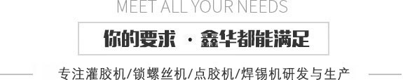 鑫華首頁  |  灌膠機(jī)系列  |  鎖螺絲機(jī)系列  |  點(diǎn)膠機(jī)系列  |  鑫華產(chǎn)品中心  |  視頻中心  |  新聞資訊  |  關(guān)于鑫華  |  聯(lián)系鑫華
